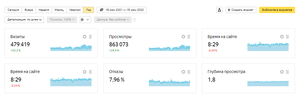 Посещаемость сайта в мае 2022 года около 2000 уникальных посетителей в сутки. В выходные чуть меньше.