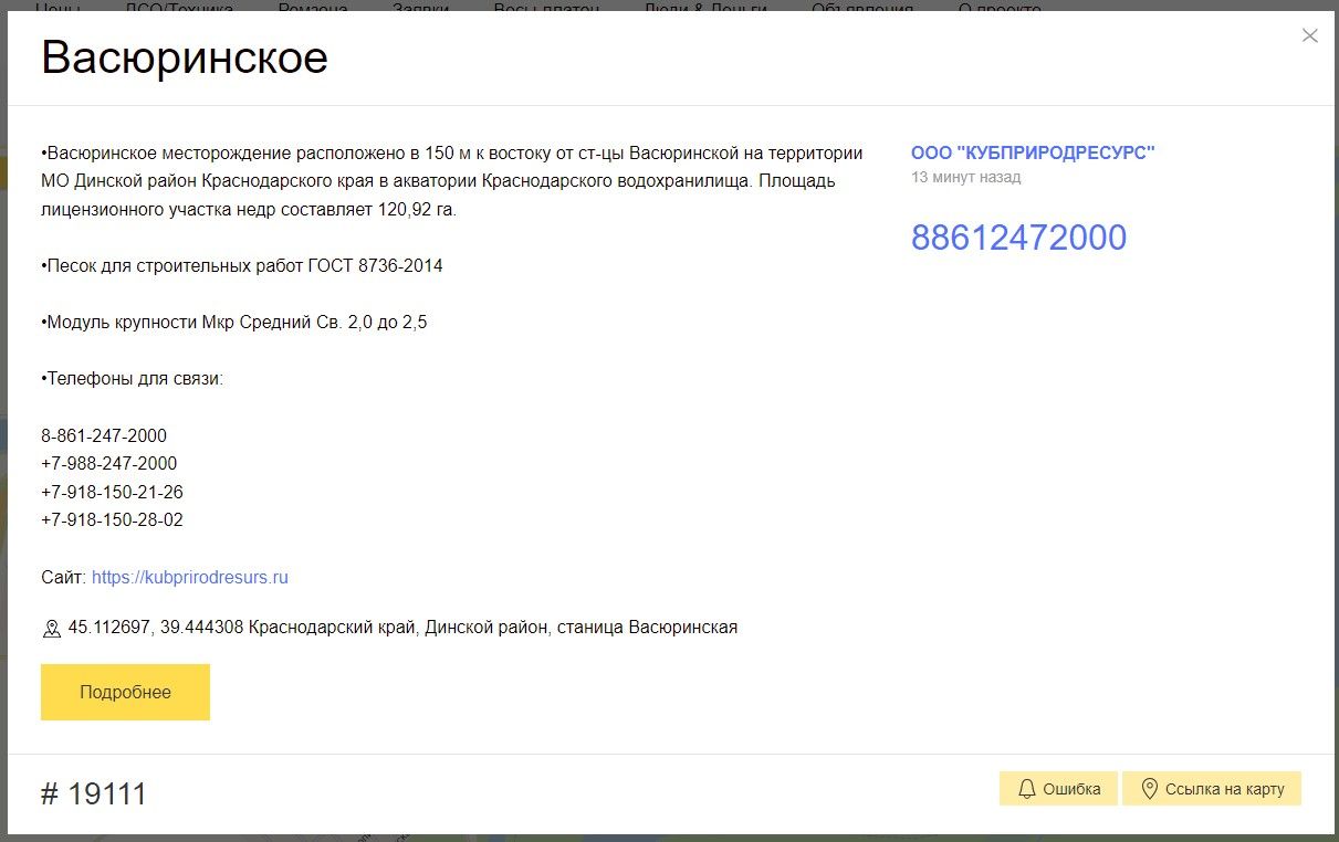 Месторождение Васюринское отображается на карте