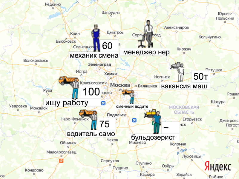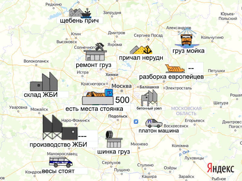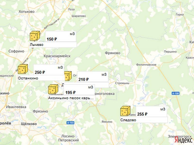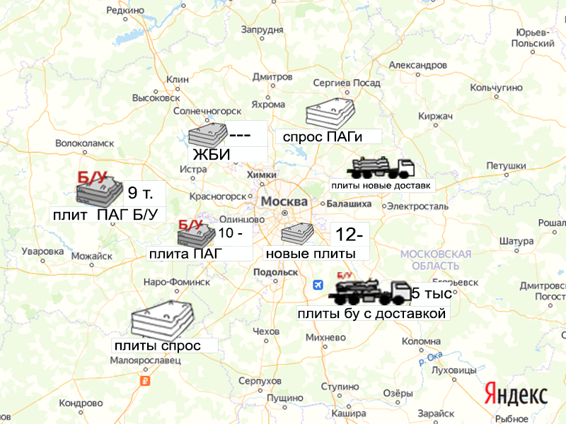 Песок, щебень, техника: объявления на карте в Москве и МО