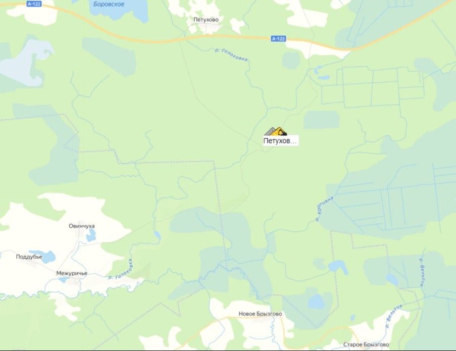 Новгородская область, Боровичский район, в 25 км восточнее г. Боровичи, в 2,5 км на юго-восток от д. Петухово