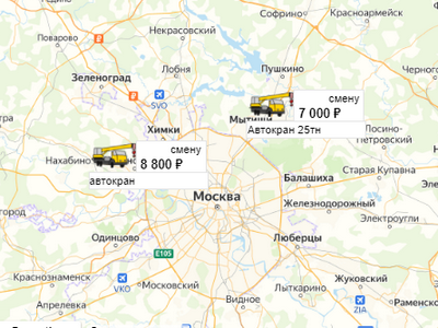| Метка на карте соответствует технике или автопарку. Цвет, количество, общее впечатление. А фото и текст на карточке можно менять онлайн | |