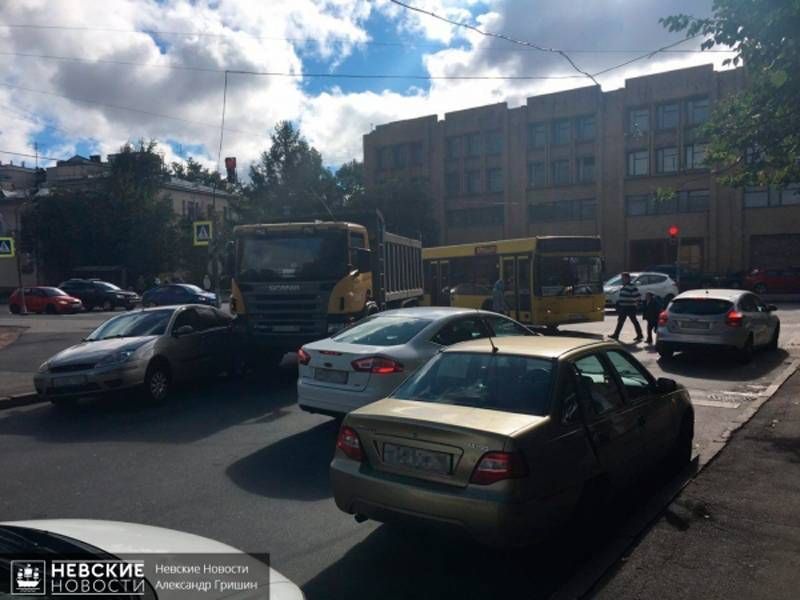На ул. Савушкина Скания догнала Форд Фокус и сильно