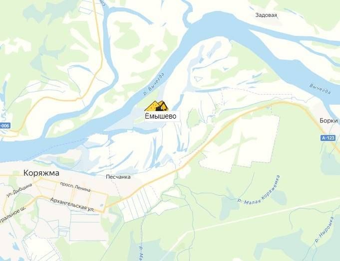 Архангельская область, Котласский район, между 42 и 43 км выше по течении р.Вычегды, на лев. берегу р. Вычегда (обсушенная коса)