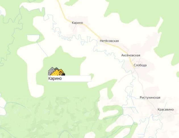 Архангельская область, Вилегодский округ, в 1,6 км к югу от дер. Карино, в 9,2 км к ЮВ от пос. Павловск