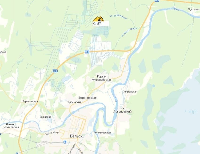 Архангельская область, Вельский район, в 3,5 км на север от г.Вельска, в 1,5 км СЗ д.Горка-Муравьевская