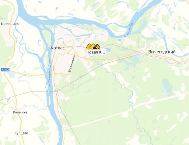 Архангельская область, Котласский район ,в 2 км к востоку от г. Котласа, в 12 км выше устья р. Вычегда