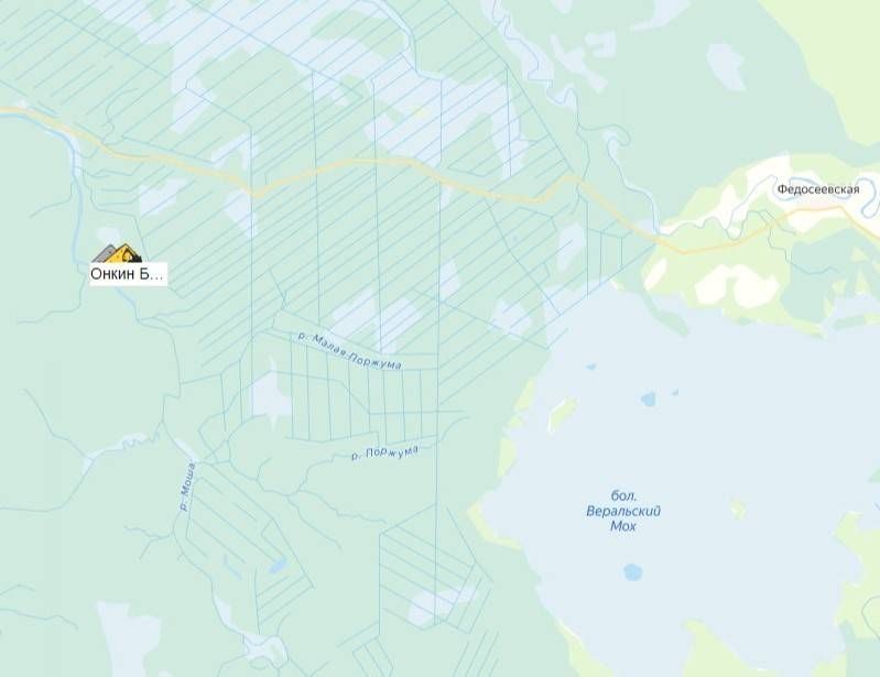 Архангельская область, Няндомский район, в 15 км к СВ от п. Шалакуша, в 11,6 км к западу от д. Федосеевская