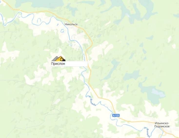 Архангельская область, Вилегодский округ, в 5,3 км к югу от с. Никольск, в 3 км в СВ от с. Казаково