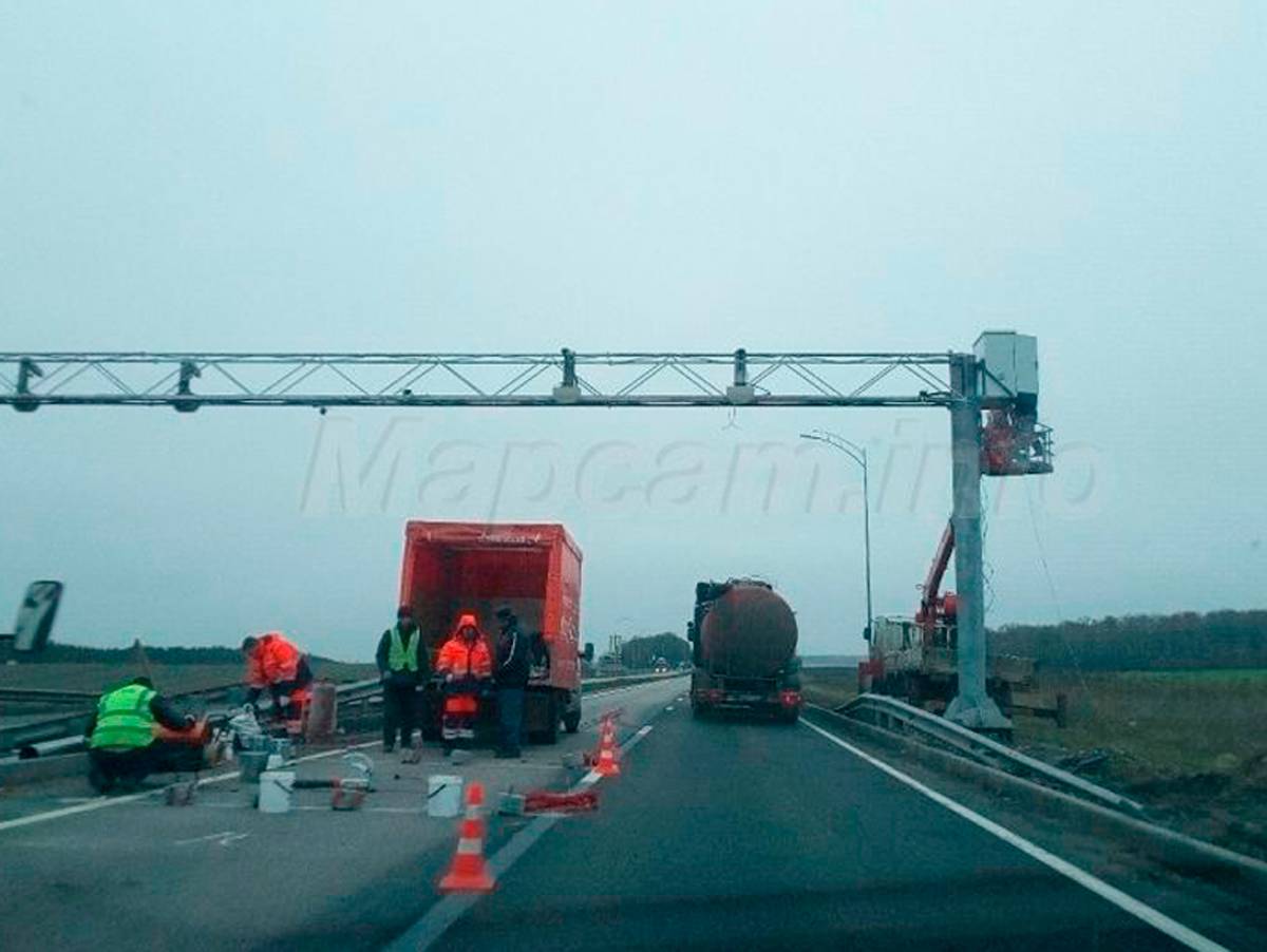- текст 14: Монтаж рамок весового контроля в Белгородской области. Рабочие не любят, когда их фотографируют