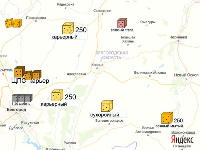 Ставки на карьерах за 1 куб - без посредников, без перекупщиков, напрямую, на условиях самовывоза. Здесь же цены от перевалок и складов нерудных материалов. - - ЗАГ 11 - : Карьеры в Белгородской области