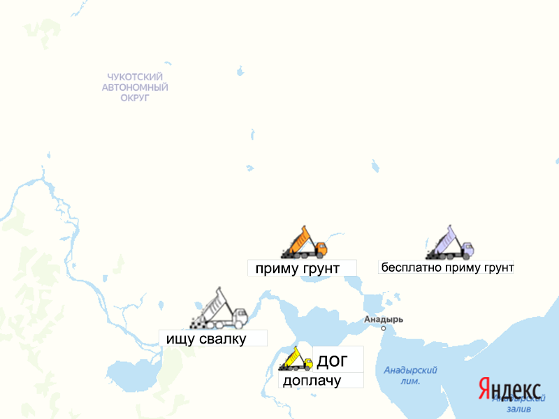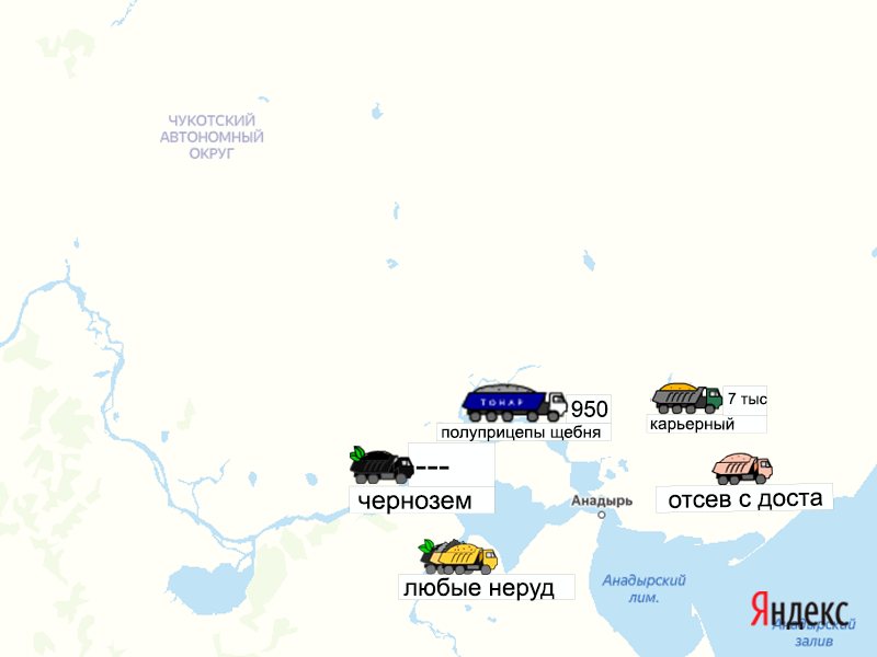Давайте сделаем для таких покупателей удобным процесс заказа нерудных с доставкой. Эта карта для них. Добавляйте свои самосвалы на карту, сколько стоит какая машина с учетом конкретного места и качества материала и объема кузова.