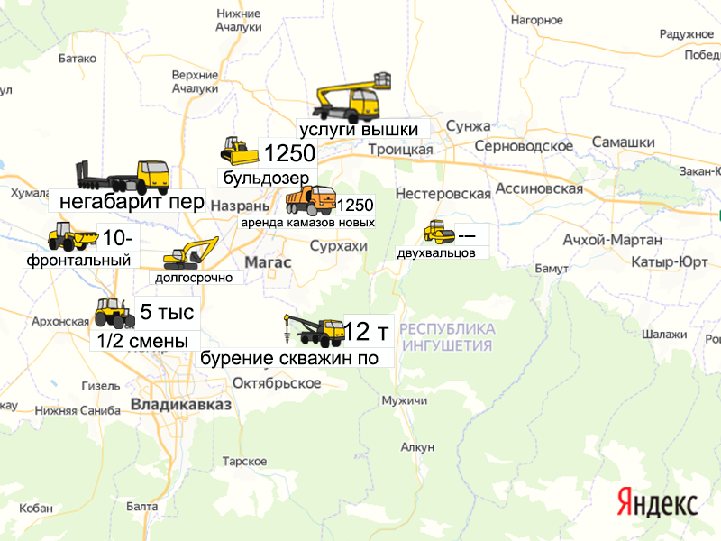 - - ЗАГ 7 - : Ставки на аренду спецтехники на карте