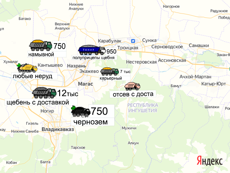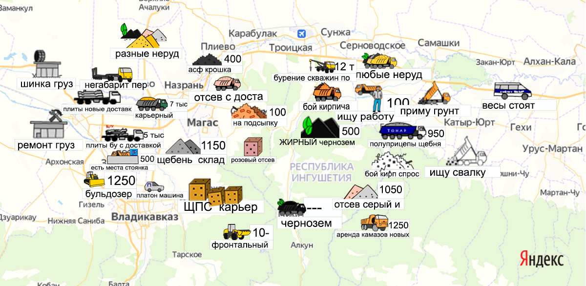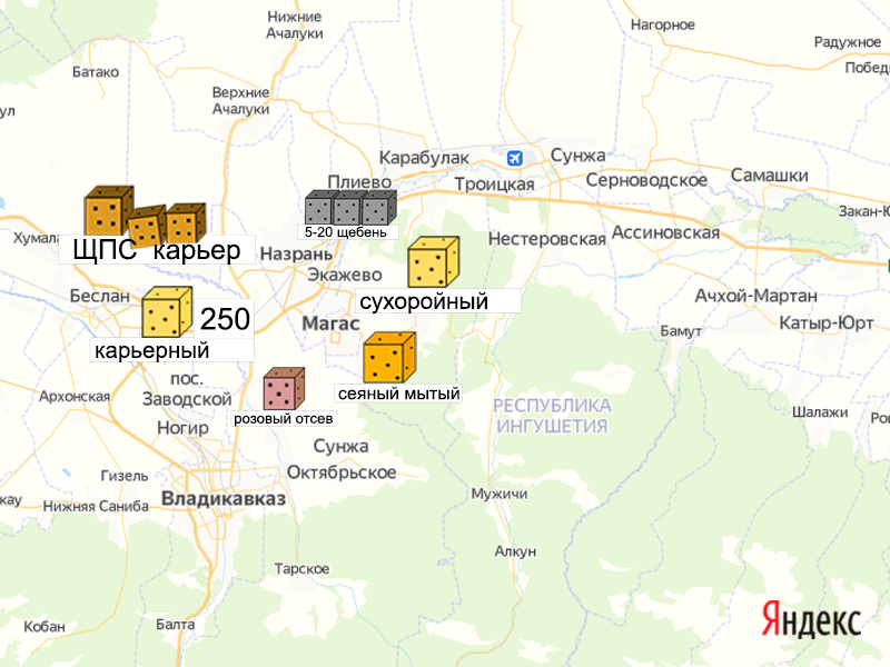 Ставки на карьерах за 1 куб - без посредников, без перекупщиков, напрямую, на условиях самовывоза. Здесь же цены от перевалок и складов нерудных материалов. - - ЗАГ 11 - : Карьеры в Ингушении