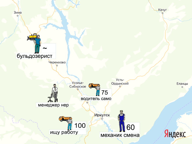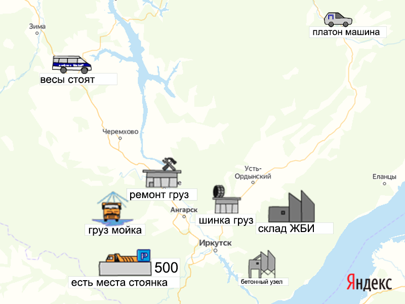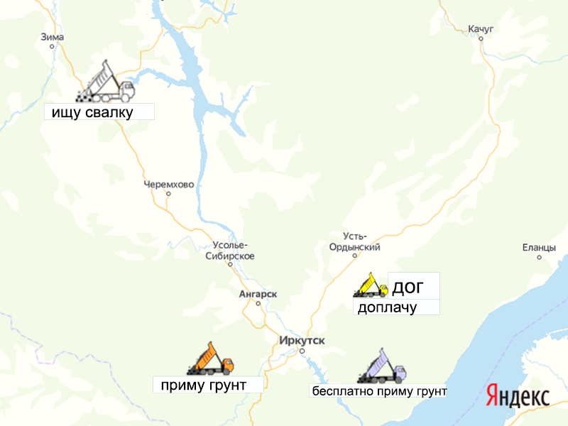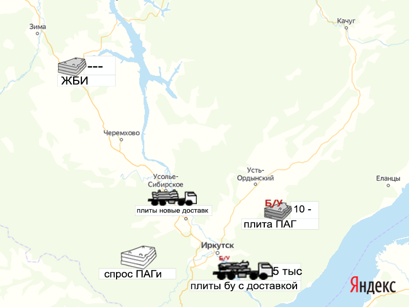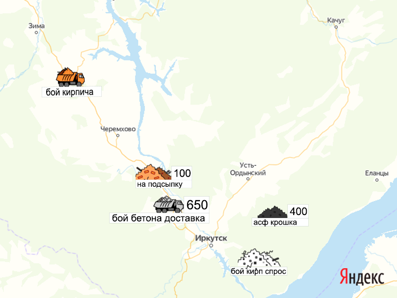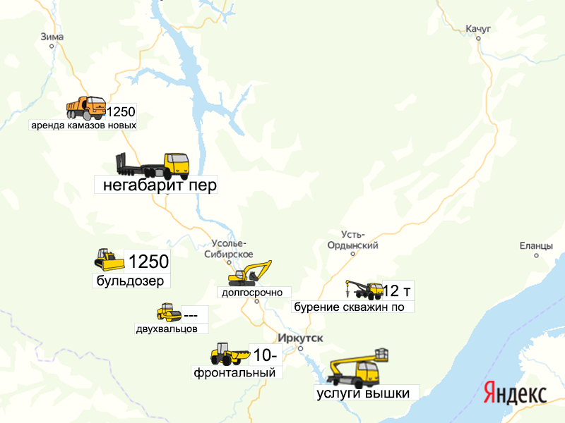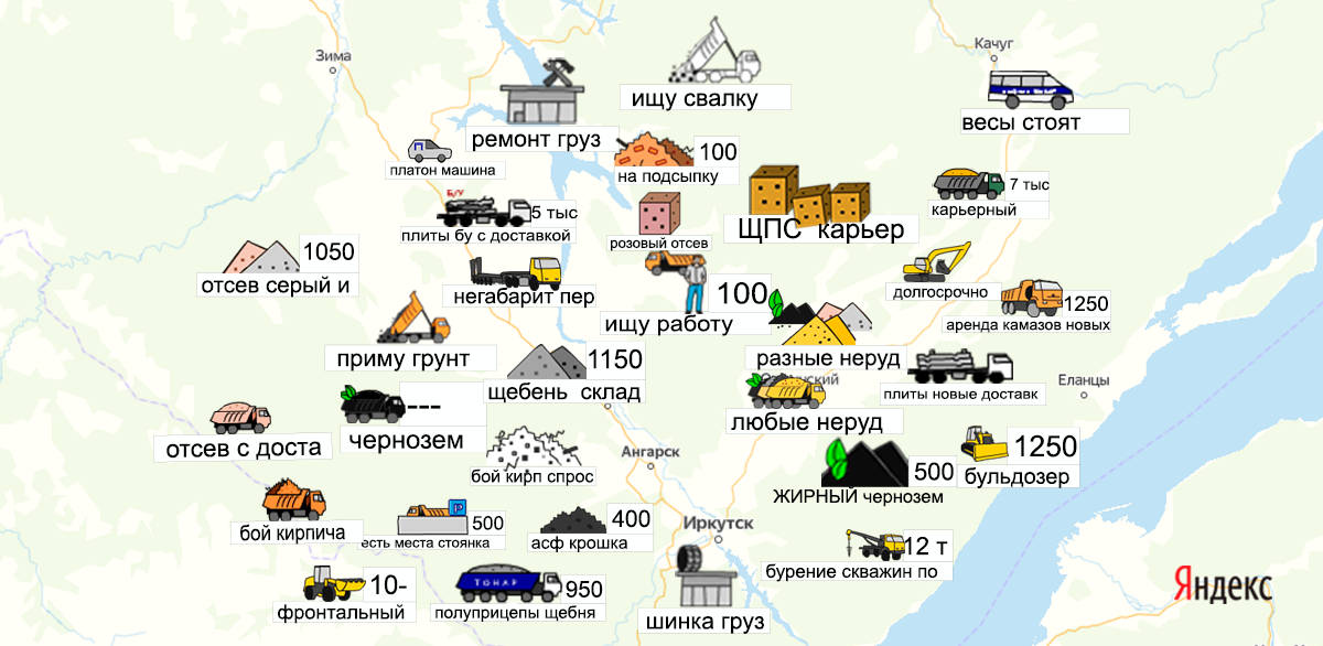 Песок, щебень, техника: объявления на карте в Иркутской области