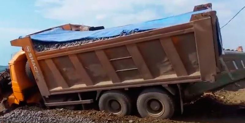 Шахман груженый щебнем потерял управление и врезался в старый ра...
