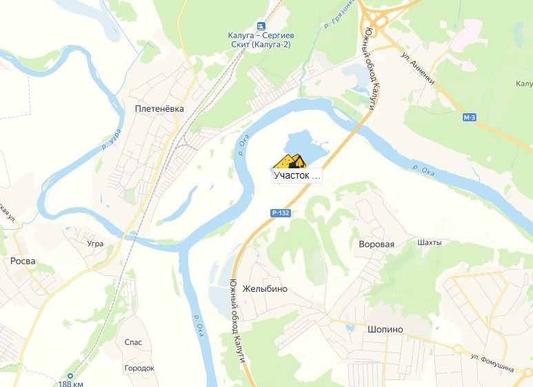 Калужская область, городской округ Калуга, съезд на ул. Раздольная (если ехать по Южному обходу Калуги), потом вдоль Южного обхода Калуги до поворота перед Аненнским мостом, дорога под автострадой