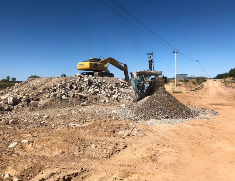 У нас тут своя площадка, и мы на ней перерабатываем щебень и бетон.