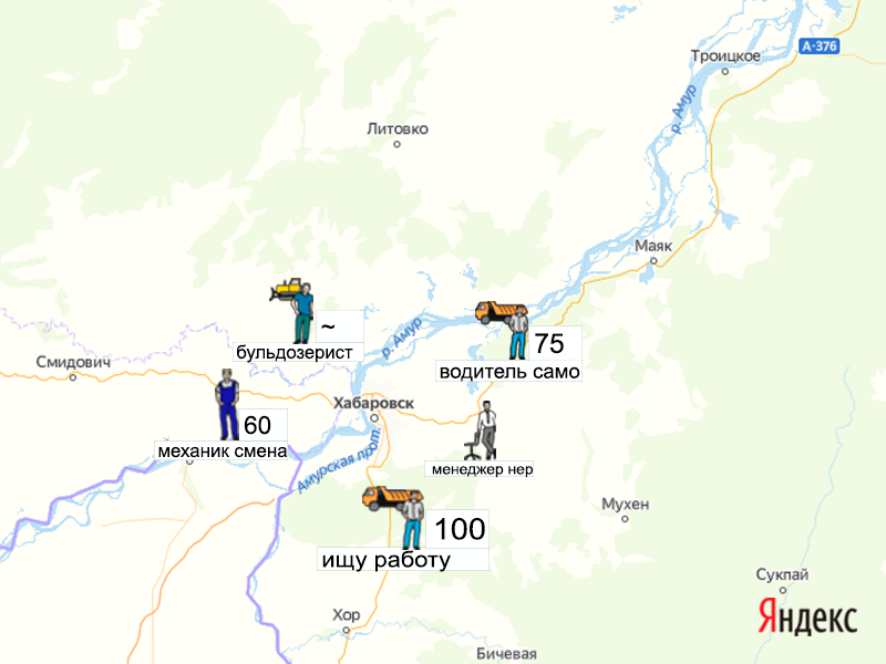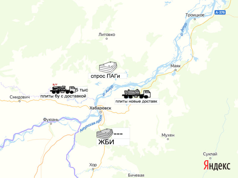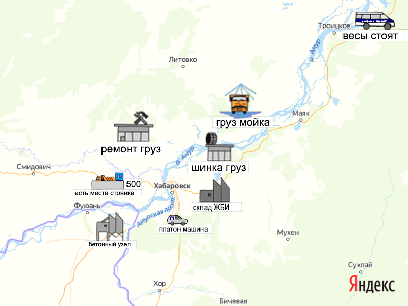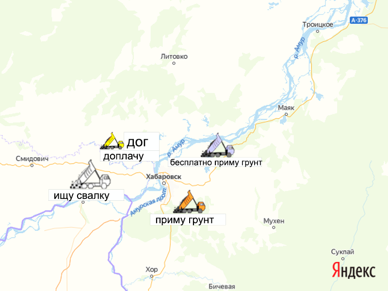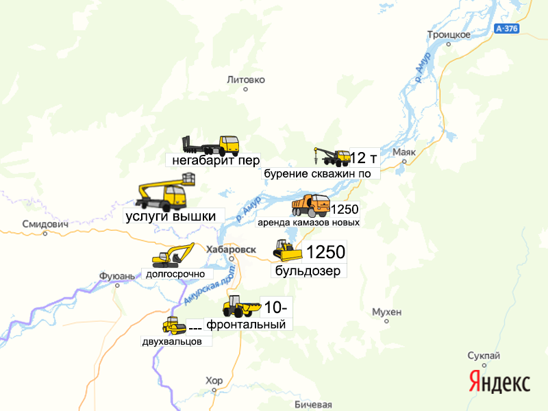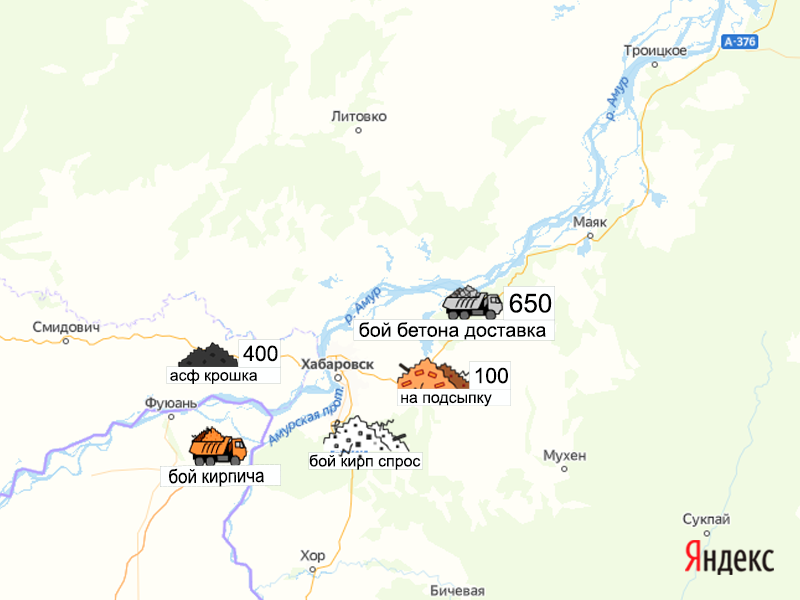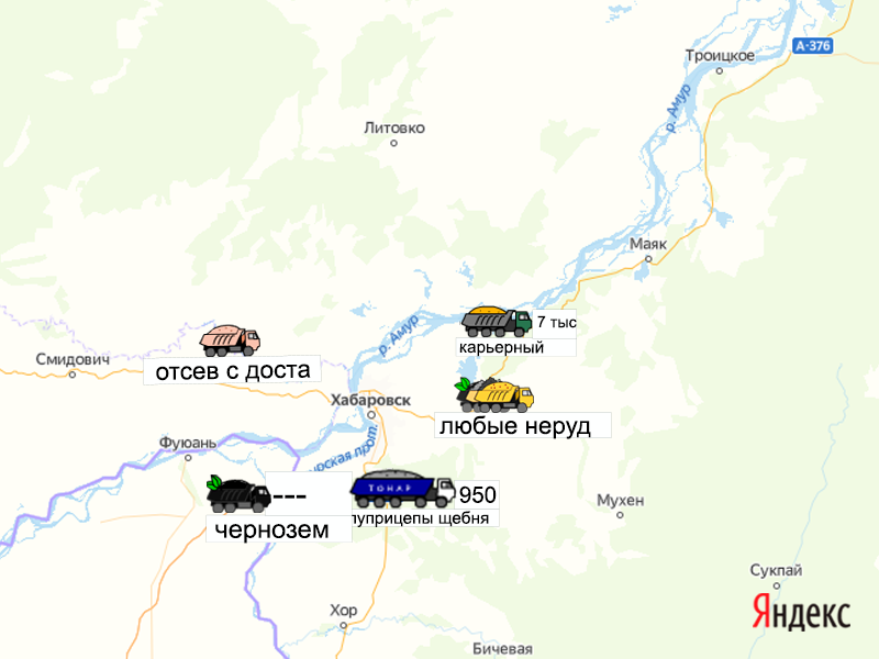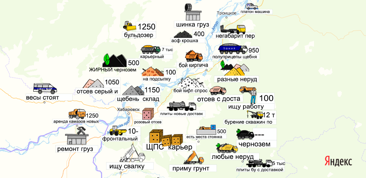 Песок, щебень, техника: объявления на карте в Хабаровском крае