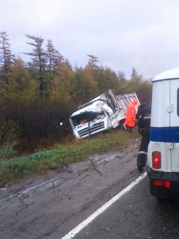 НА Трассе Южно-Сахалинск - Оха рядом с пос. Кошевое самосвал улетел...