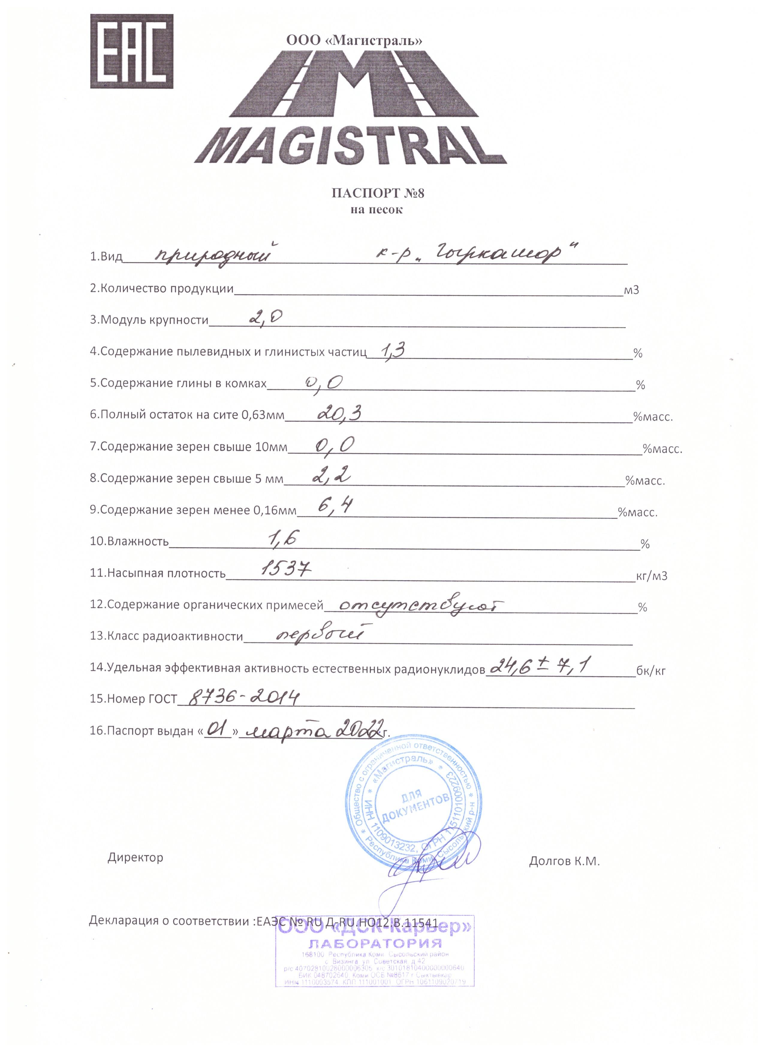 - Посмотрите карьер в Прилузском районе есть у ООО Магистраль