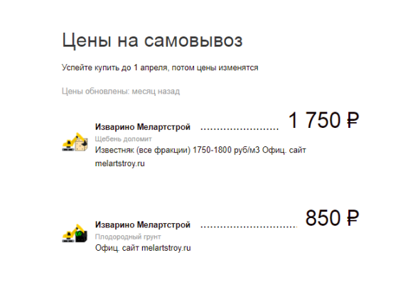 Все цены регулярно обновляются менеджерами карьеров. Около каждой цены стоит дата обновления.