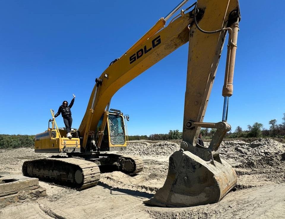 Мне кто-то сказал, тут идёт добыча песка из недр реки Кубани, работает земс...