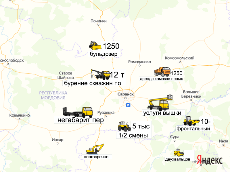 - - ЗАГ 7 - : Ставки на аренду спецтехники на карте