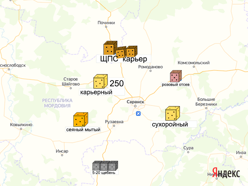 Ставки на карьерах за 1 куб - без посредников, без перекупщиков, напрямую, на условиях самовывоза. Здесь же цены от перевалок и складов нерудных материалов. - - ЗАГ 11 - : Карьеры в Мордовии