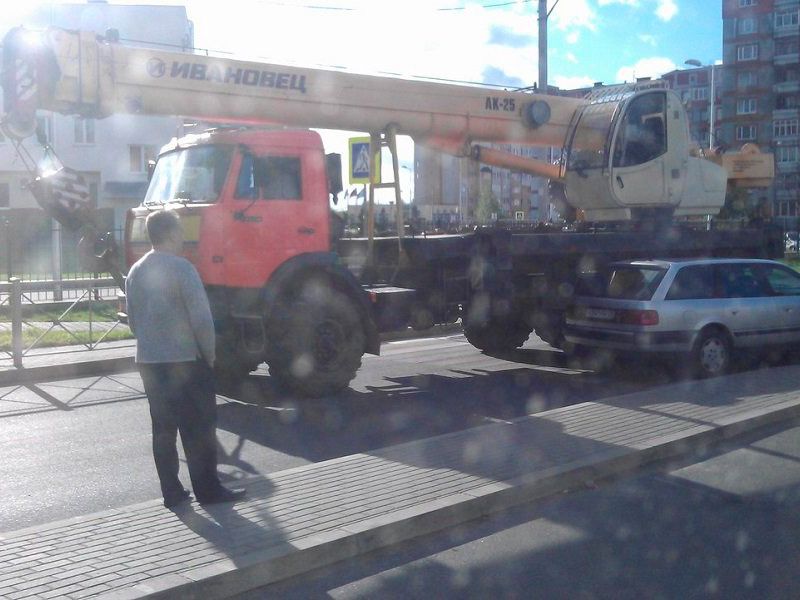 На ул. Карамзина столкнулись легковушка и автокран. В районе школ...