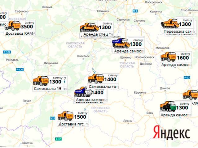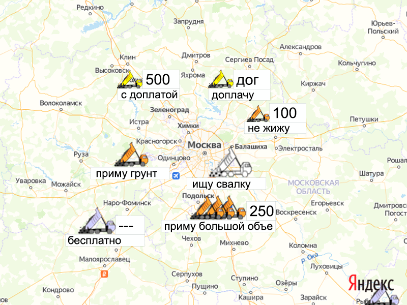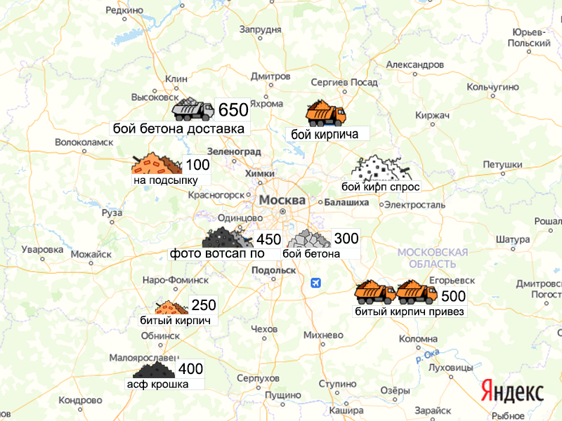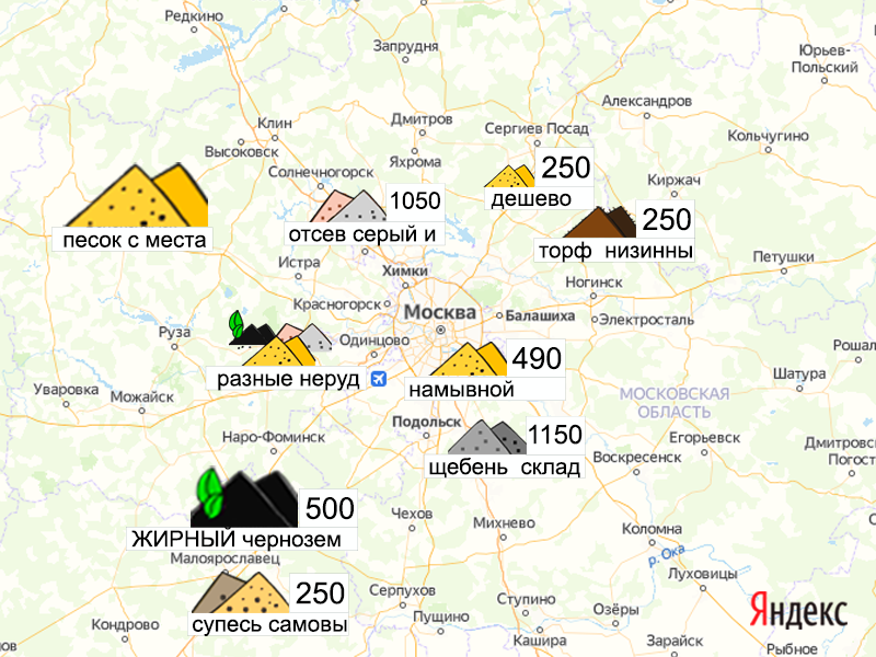 Песок, щебень, техника: объявления на карте в Москве и МО