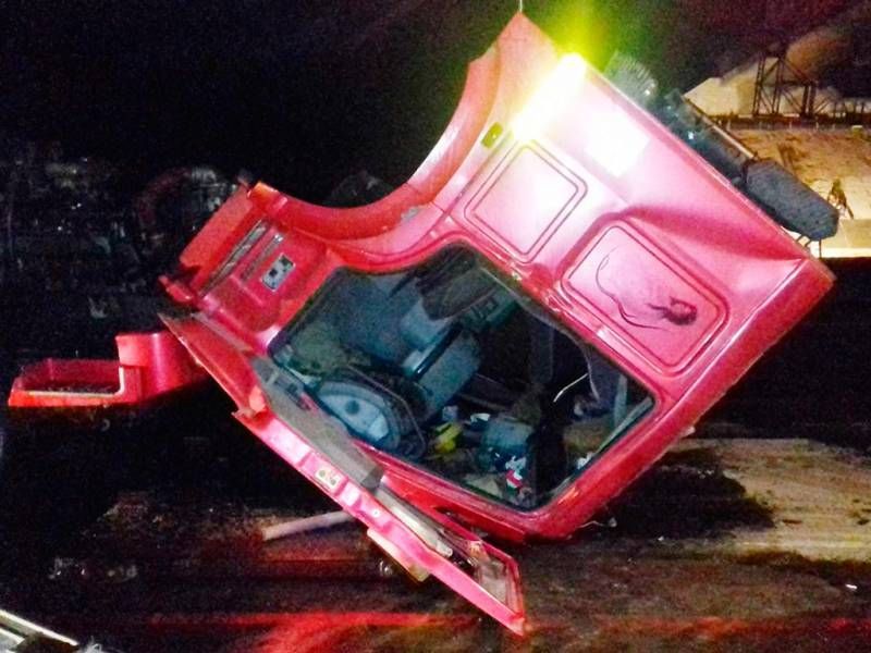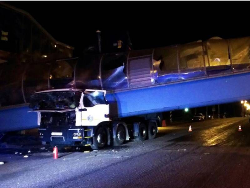 Самосвал зацепил опору моста