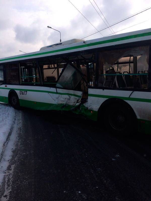Самосвал протаранил бок автобусу