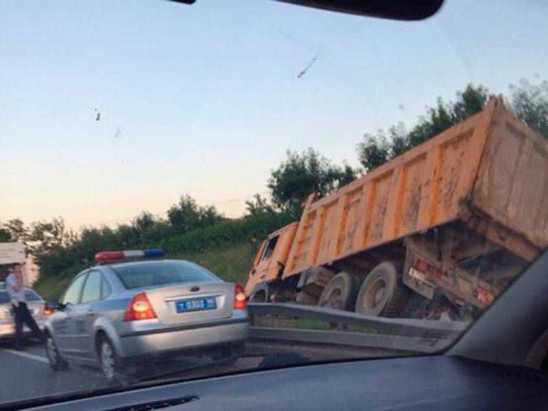 Самосвал экстренно затормозил чтобы избежать ДТП