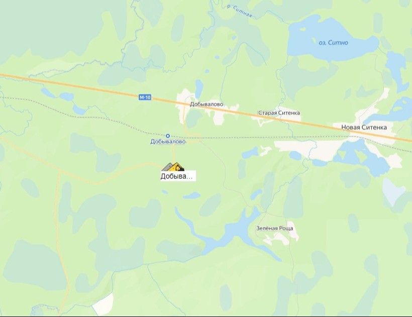 Новгородская область, Валдайский район, в 1,0 км на юго-восток от ж.д. станции Добывалово и в 10,0 км к юго-востоку от г.Валдай