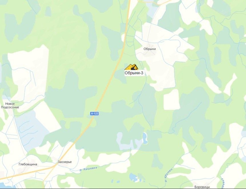 Новгородская область, Демянский муниципальный округ, в 1 км к юго-западу от д. Обрыни