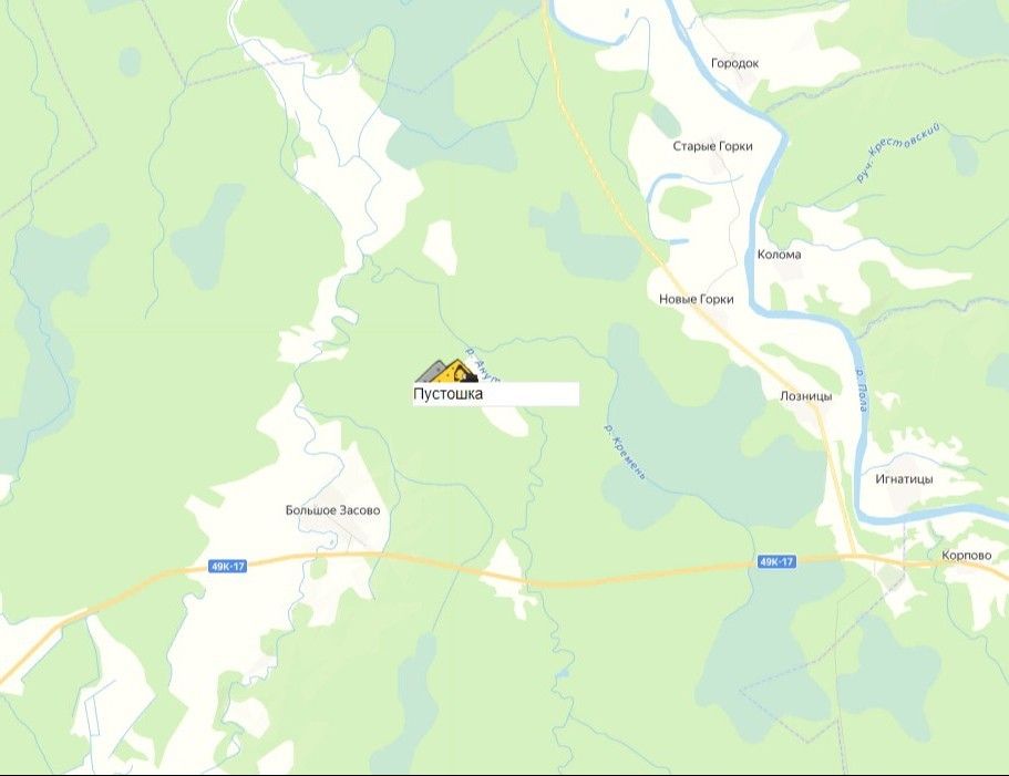 Новгородская область, Старорусский район, в 1,7 км на северо-восток от д. Большое Засово, в 46 км на юго-восток от г. Старая Русса