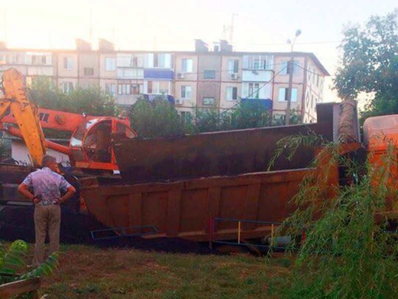 Самосвал провалился под асфальт