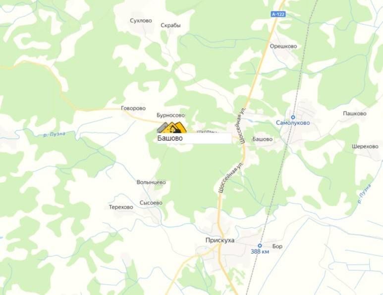 Псковская область, Локнянский м.о., В 20 км на Ю от п. Локня, в 1 км к З от д. Башово