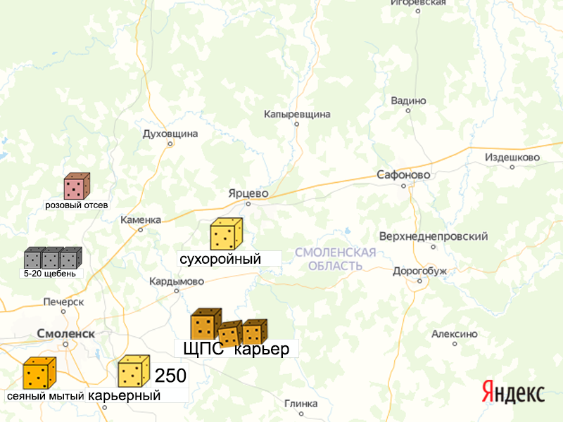 Ставки на карьерах за 1 куб - без посредников, без перекупщиков, напрямую, на условиях самовывоза. Здесь же цены от перевалок и складов нерудных материалов. - - ЗАГ 11 - : Карьеры в Смоленской области