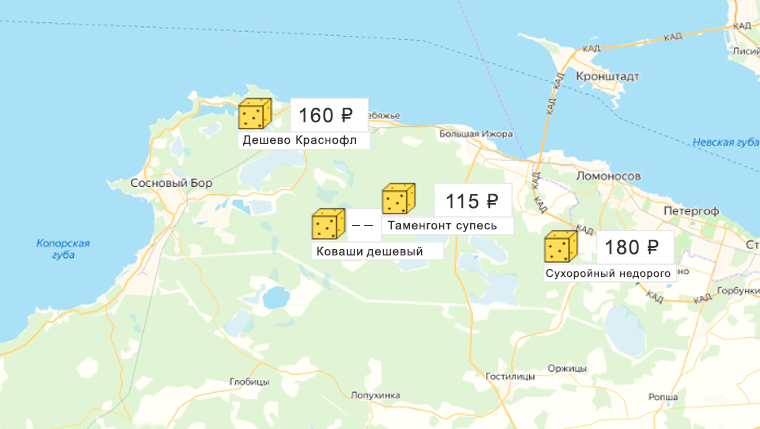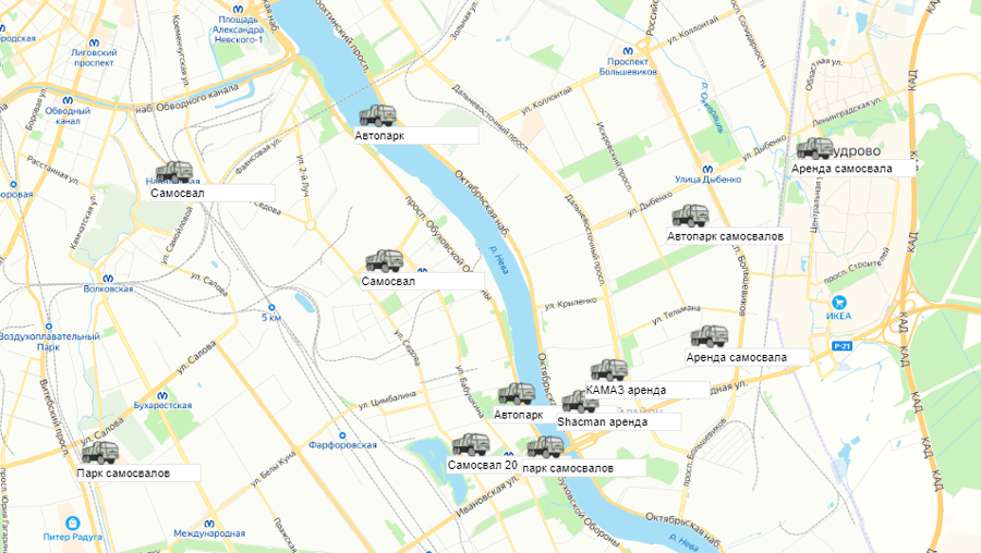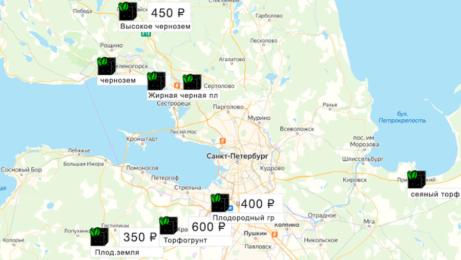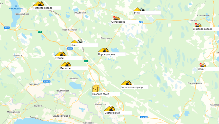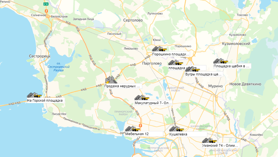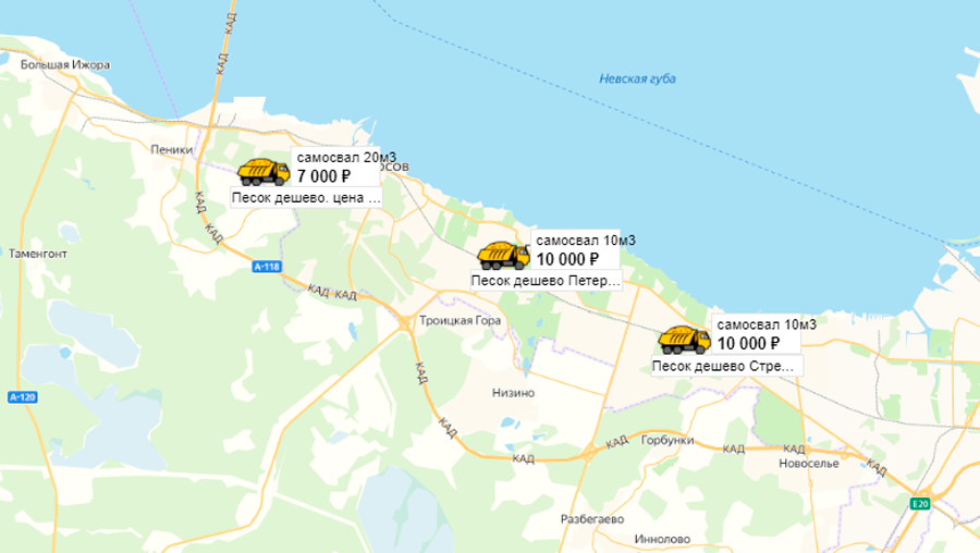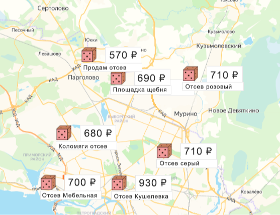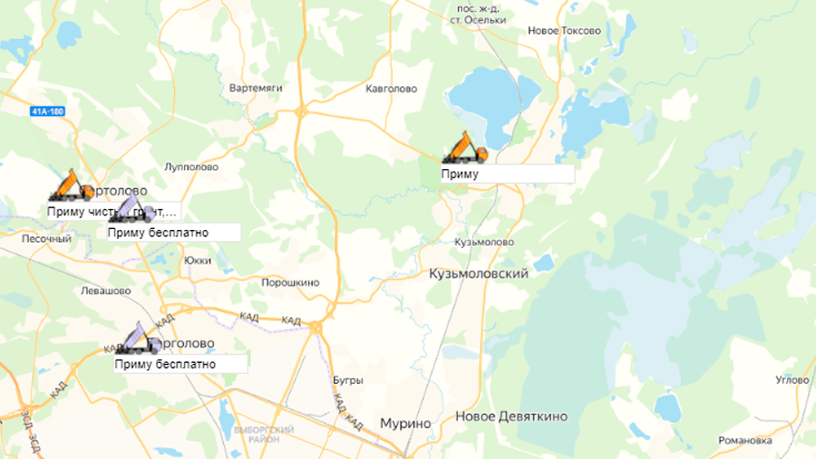 Песок, щебень, техника: объявления на карте в СПб и ЛО