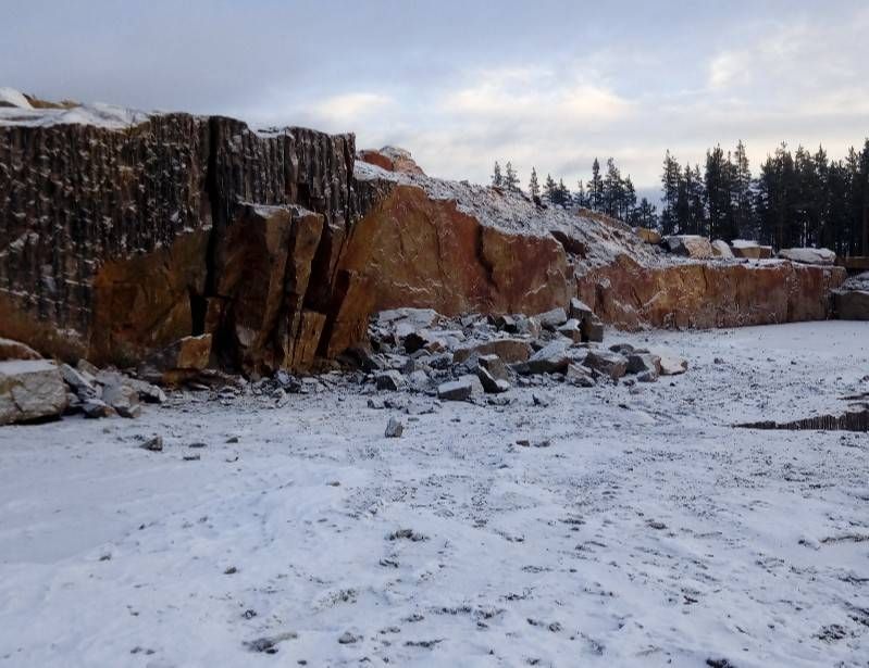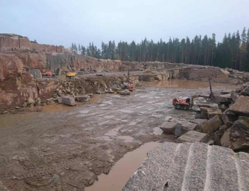 Это месторождение работает периодически, объем добычи зависит от текущего спроса на гранитные блоки. Горная масса залегает сложно.