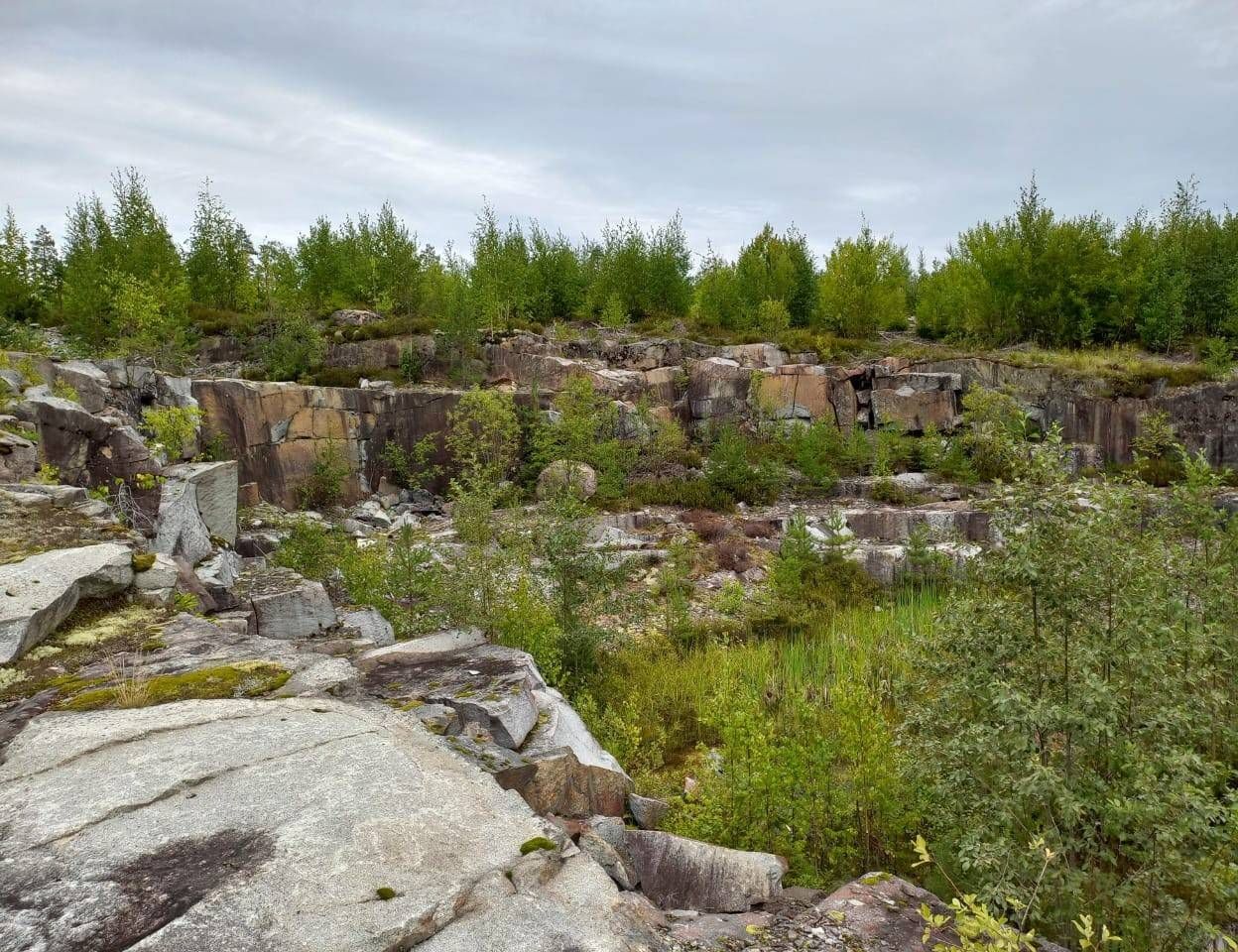 Добыча двух цветов гранита: Серий и розовый (Рапакиви)