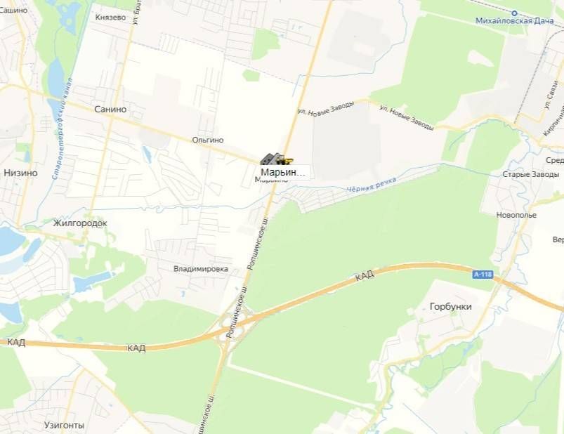 Санкт-Петербург, Ропшинское шоссе, съезд с КАДА в сторону Петергофа адрес: территория Марьино, 18АС. Бывший СевЗапКанат