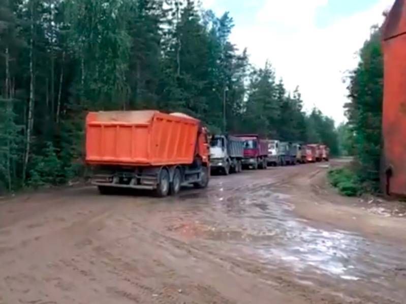 Действующий карьер в Кингисеппском районе Ленинградской области. Недавно писали, как в июле 2020 года дорожники блокировали выезд из карьера, потому что самосвалы с песком пачкают дорогу. Чем эта история закончилась, не уточняется.