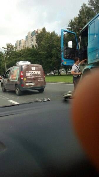 Столкнулись миксер и машина перевозки фарша. Других жертв нет.