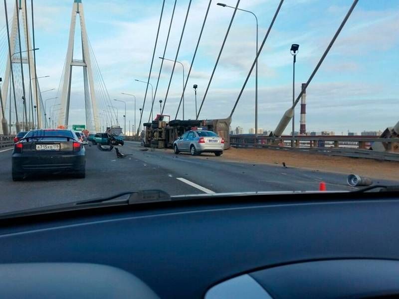 В воскресенье около 8 утра на Вантовом мосту произошло ДТП.
