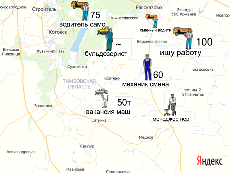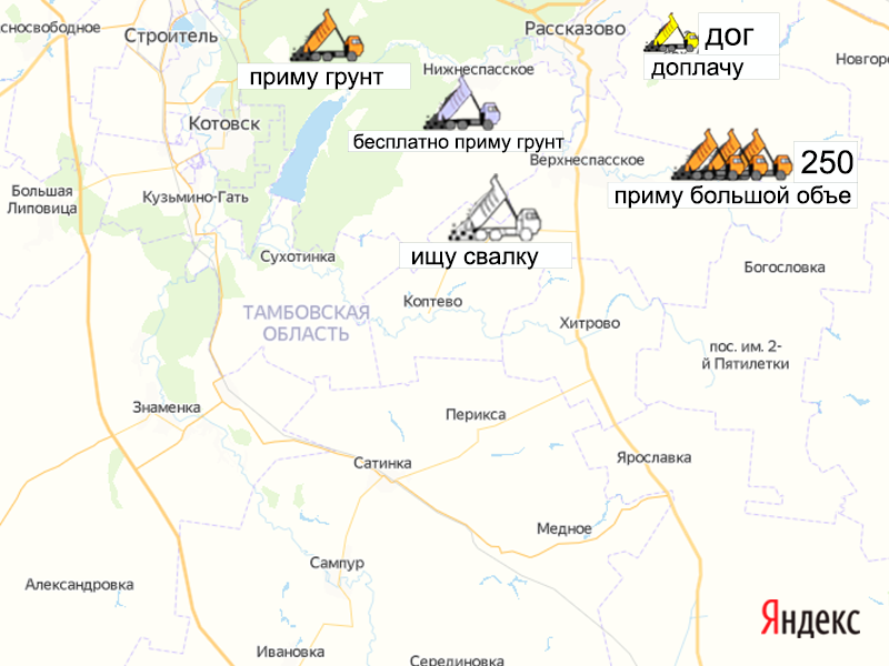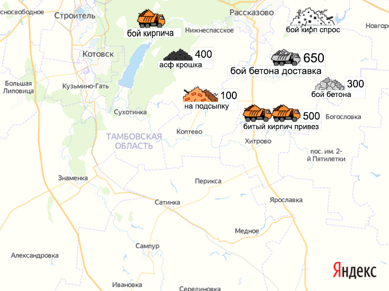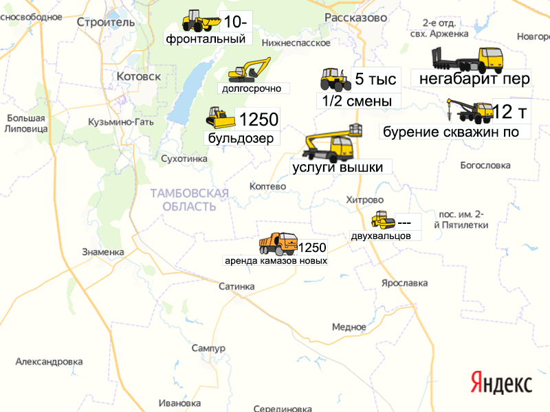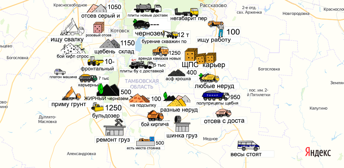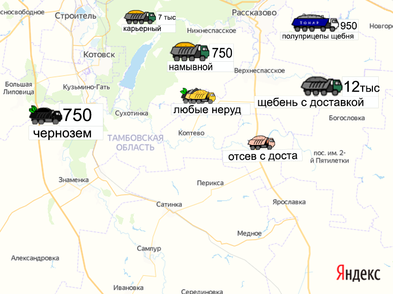 Песок, щебень, техника: объявления на карте в Тамбовской области
