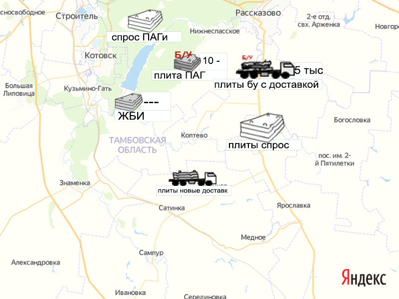 - текст 2: Тут могут быть предложения от карьеров и от всех пользователей. Главное условие - конкретный объем, конкретное качество материала (возможно фото), конкретная цена, конкретное место самовывоза. Общие перечисления всех материалов на карте будут неинформативны и модератор их сразу удалит.