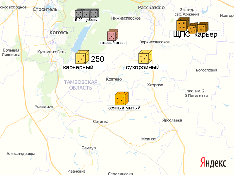 Ставки на карьерах за 1 куб - без посредников, без перекупщиков, напрямую, на условиях самовывоза. Здесь же цены от перевалок и складов нерудных материалов. - - ЗАГ 11 - : Карьеры в Тамбовской области