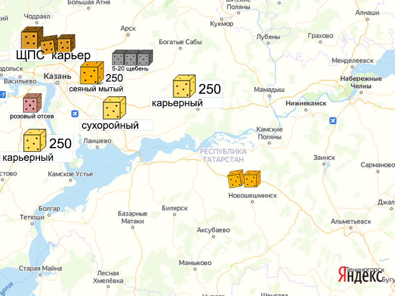 Ставки на карьерах за 1 куб - без посредников, без перекупщиков, напрямую, на условиях самовывоза. Здесь же цены от перевалок и складов нерудных материалов. - - ЗАГ 11 - : Карьеры в Татарстане
